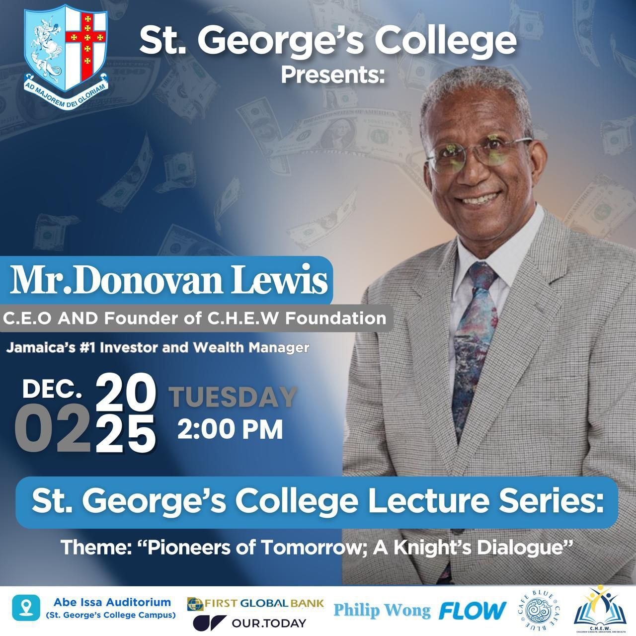 The St George’s College’s ‘A Knight’s Dialogue: Pioneers of Tomorrow’ lecture series has been a success and ends the year with Donovan Lewis as special guest speaker at the Abe Issa Auditorium next Tuesday (December 2). Lewis, founder and chairman …